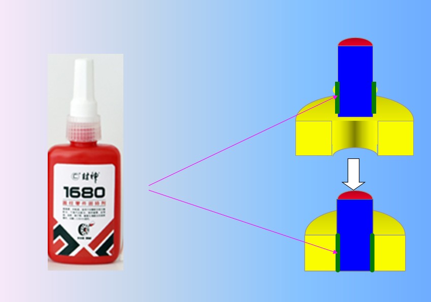 工件套(嵌)接組裝時(shí)厭氧膠能滲入全部縫?隙,固化后使工件100%接觸,達(dá)到粘接固持,兼有防松、密封的作用,并可將工件組裝配合從壓配合改為滑配合,加工精度、光潔度都可以適當(dāng)降低,還消除了壓裝時(shí)引起的變形,提高了組裝精度,因此,有一舉多得的作用。對于過盈配合量不大的軸承、襯套,改用厭氧膠粘固尤為合適。這對薄壁、高速、精密的軸承,意義更為突出,還有助于降低噪音和振動。